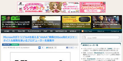次世代コンソールの噂がまことしやかに囁かれる昨今ですが、本日MicrosoftがトリプルAを超える“AAAA”(4A)規模のXbox用タイトル(※ 360の言及はなし)開発に従事するエグゼクティブプロデューサーを募集していることが公式の人材募集ページから明らかになりました。