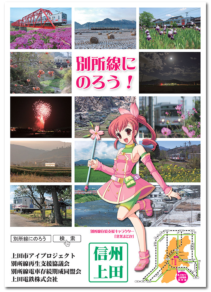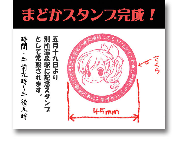 この度、別所線電車存続期成同盟会では、別所線を利用していただいたお客様に対し、旅の思い出となる記念スタンプを「別所線存続支援キャラクター北条まどか」を使用して製作いたしました。別所線をご利用いただいた際には、ぜひ、「まどかスタンプ」を押していってください。