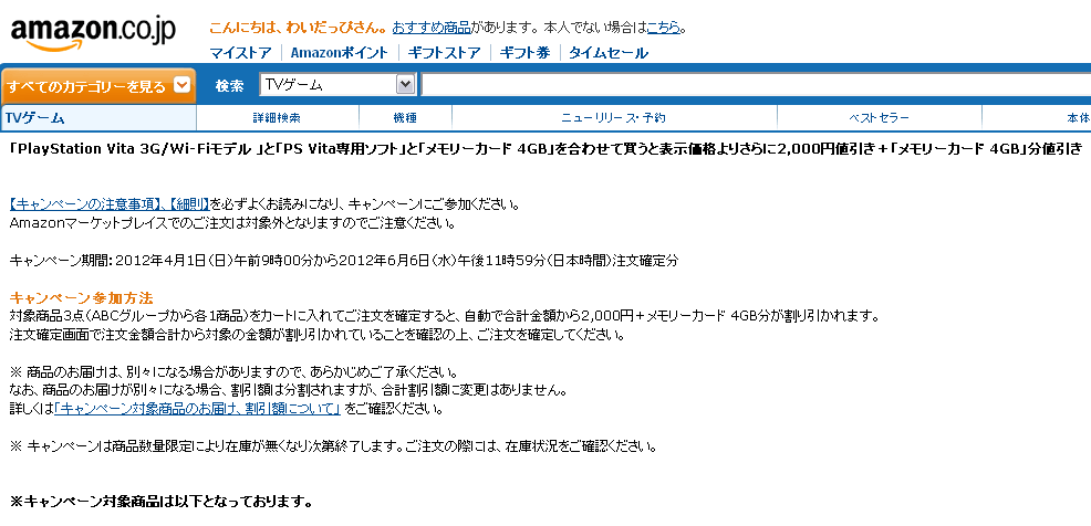 キャンペーン期間:2012年4月1日(日)午前9時00分から2012年5月6日(日)午後11時59分(日本時間)注文確定分