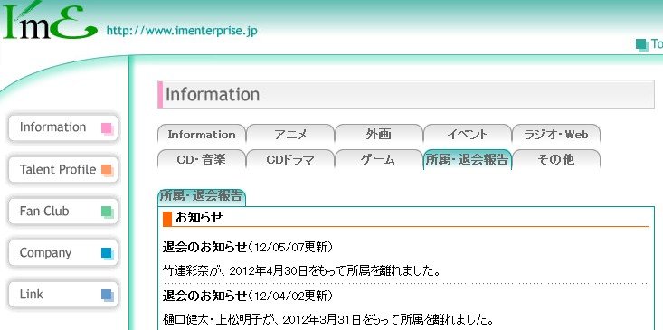 竹達彩奈が、2012年4月30日をもって所属を離れました。