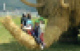 でっかい稲わらマンモス、子供ら大喜び